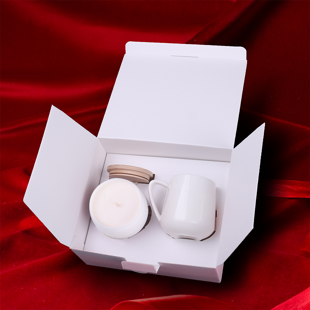 Subtelny porcelanowy kubek Eris wraz z customizowaną ekologiczną, wypełnioną woskiem sojowym świecą Glamour. Świeca posiada drewnianą pokrywkę pozwalającą zatrzymać zapach na dłużej, na którą również można nanieść branding. Zestaw pakowany jest w dedykowane ekologiczne opakowanie Snowy. Całość opatrzona elegancką personalizowaną obwolutą. PREZENTOWANE ZDOBIENIE MA CHARAKTER POGLĄDOWY I NIE JEST WLICZONE W CENĘ PRODUKTU. ZESTAW DOSTĘPNY W DEDYKOWANYM OPAKOWANIU SNOWY Z WYBRANĄ OPCJĄ ZDOBIENIA.